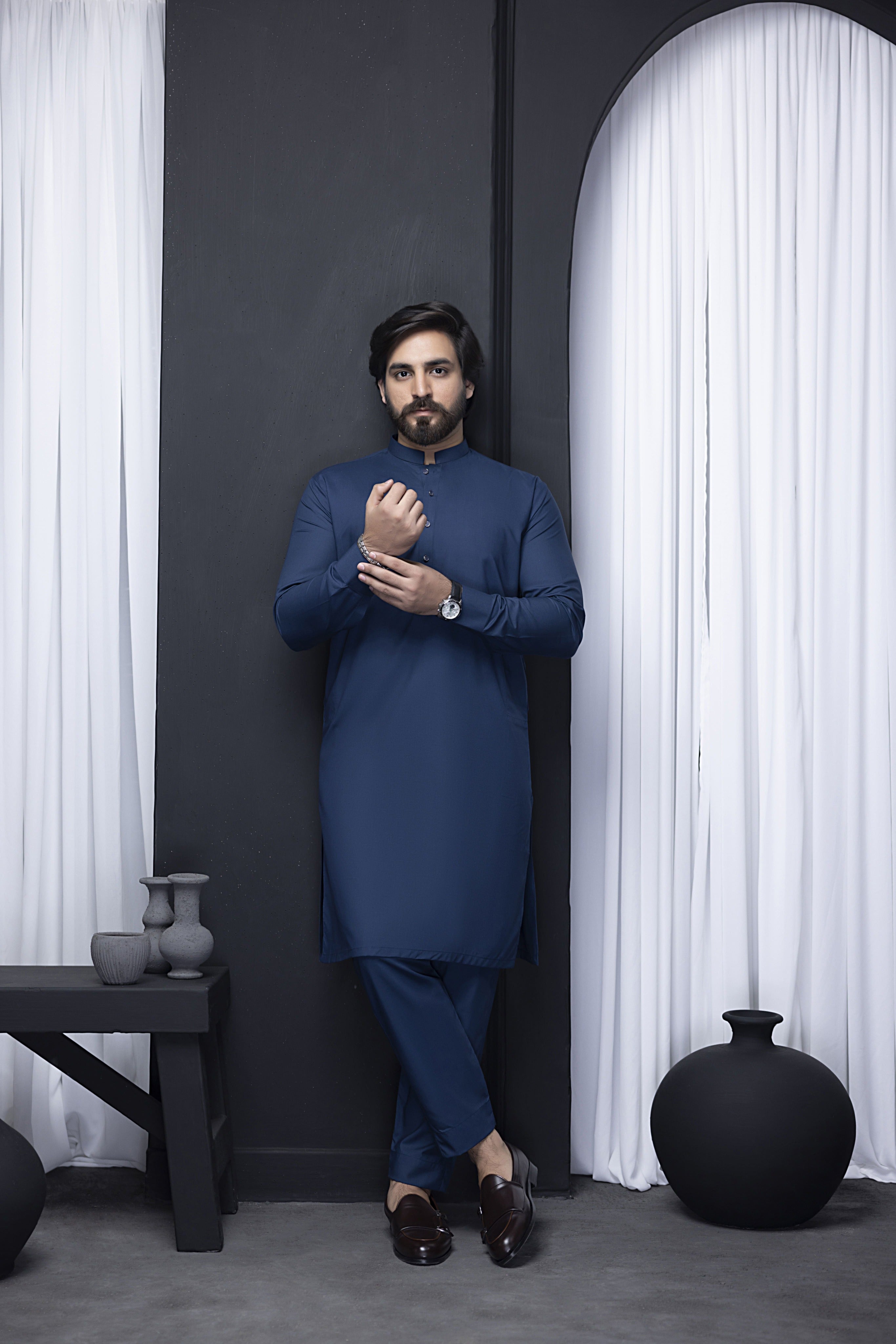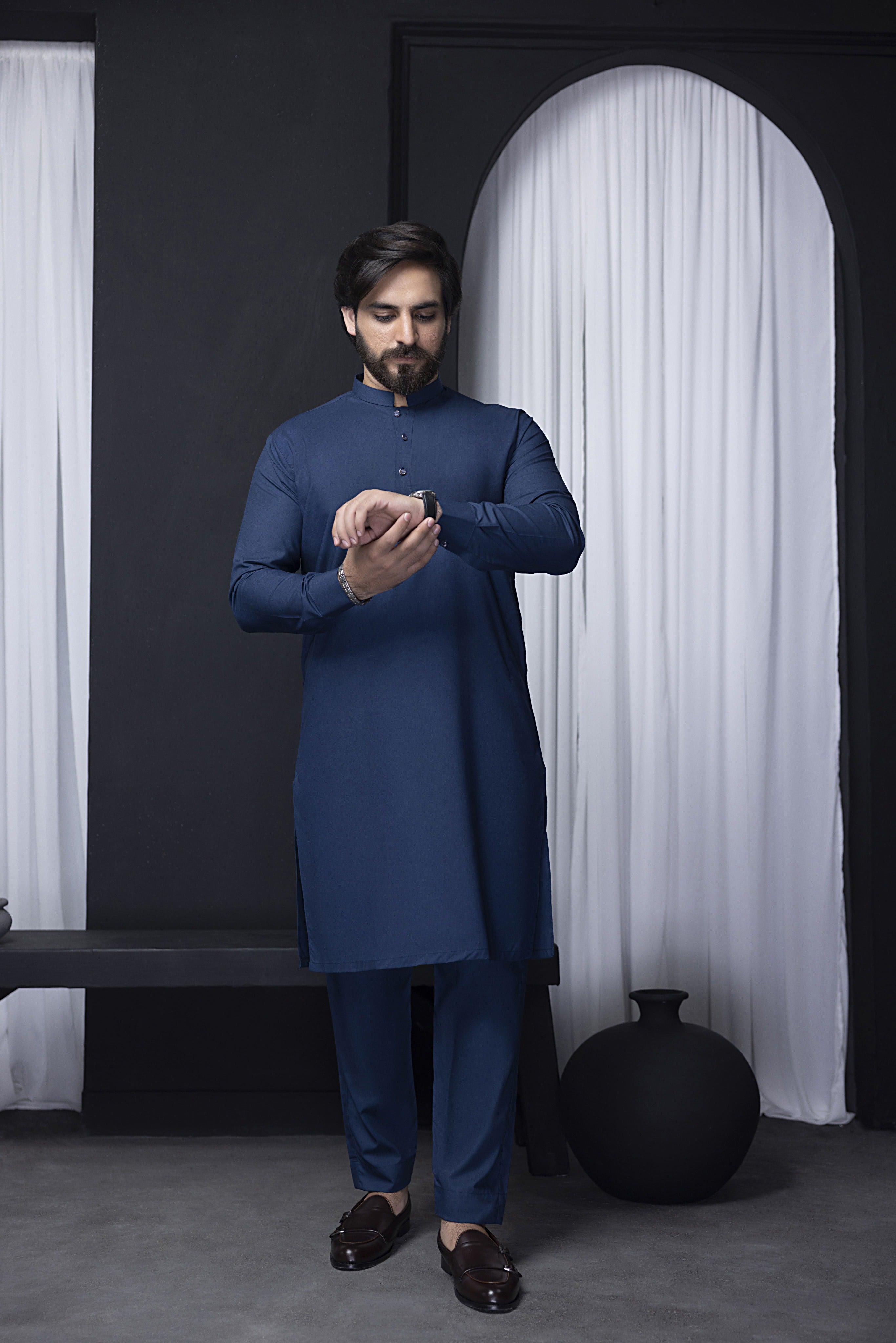 "Discover the refined style of our Elegant Blue Kurta Pajama. Crafted from high-quality fabric for maximum comfort and durability, this traditional attire is perfect for weddings, festive occasions, or casual wear. The sleek design features a mandarin collar and intricate button detailing, offering a modern touch to a classic outfit. Pair it with formal shoes or traditional footwear for a complete look."