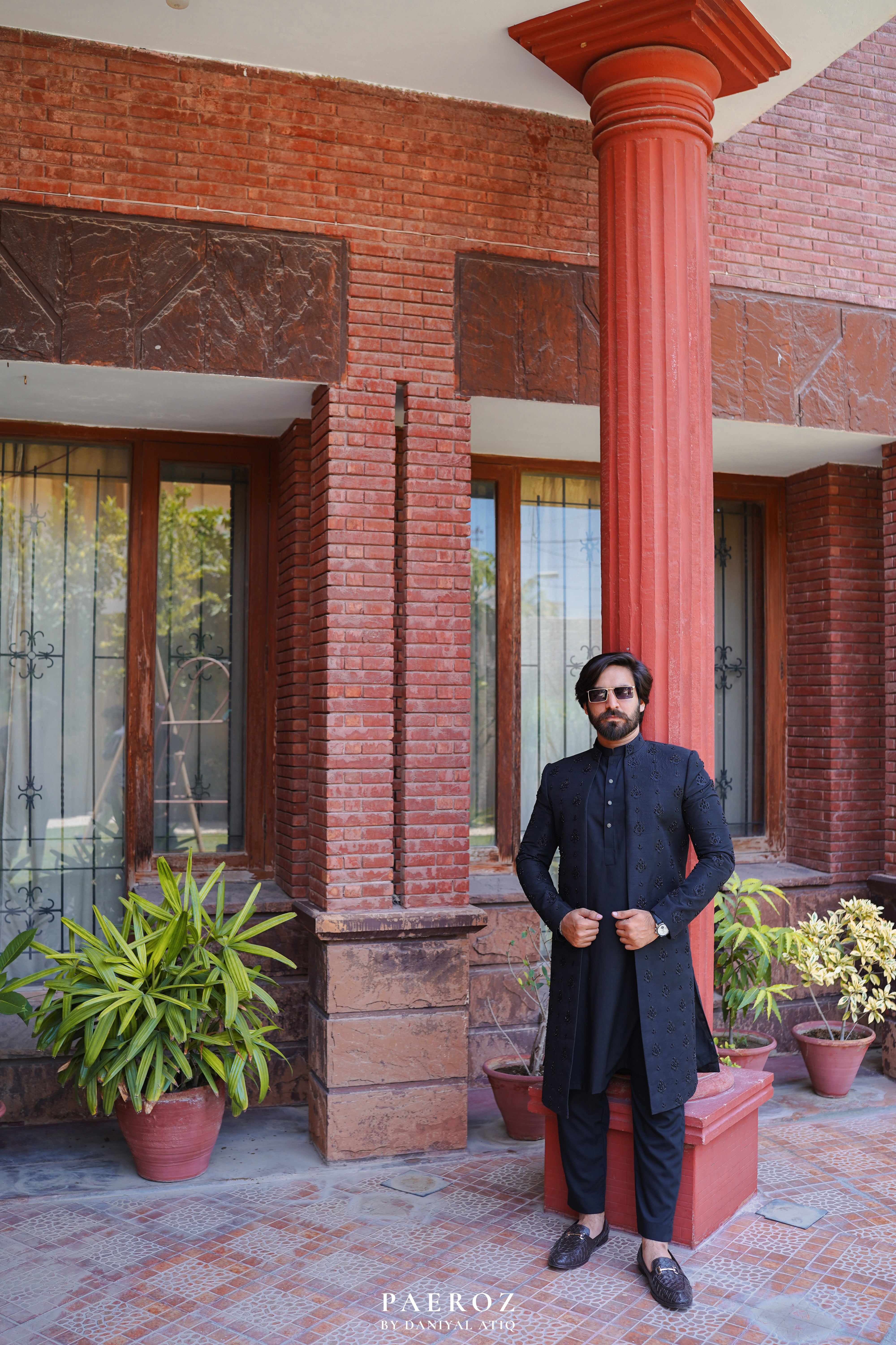 Exquisite Sophistication: The Regal Black Embroidered Sherwani