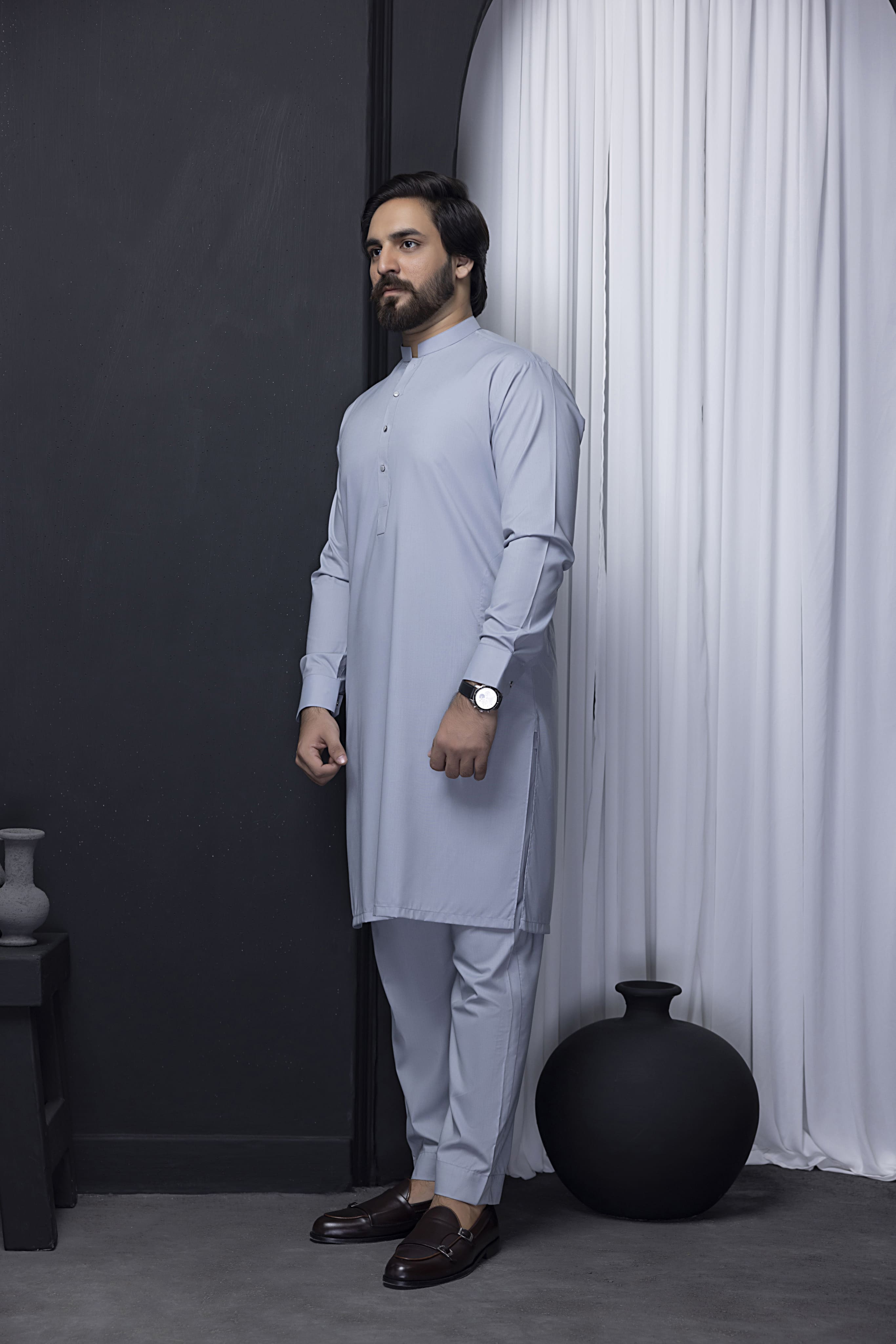 Elevate your wardrobe with this tailored Sky Blue Kurta Pajama. Crafted from high-quality fabric, it features a sleek sherwani collar, Metak style buttons, and a perfect slim fit. Ideal for festive and formal occasions, this set combines comfort with refined elegance.