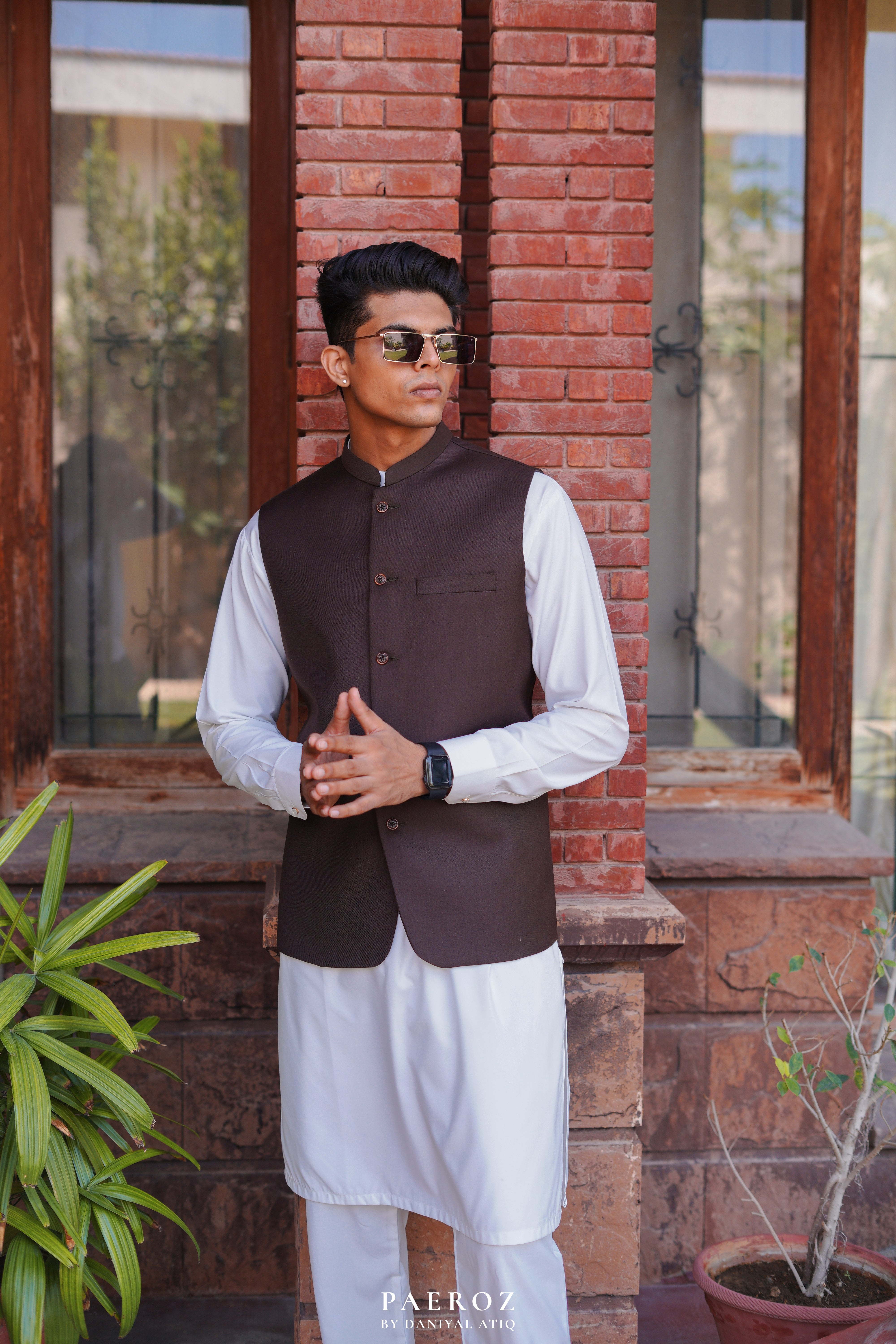Elevate your formal attire with our Chocolate Brown Plain Waistcoat, tailored to perfection in suiting fabric. This waistcoat features a rich chocolate brown hue that adds sophistication to any ensemble, complemented by simple buttons for a classic touch.